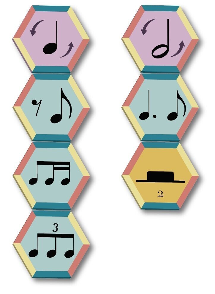54 fichas con ritmos, líneas divisorias y tipos de compás para que podáis crear todas las combinaciones que imaginéis.